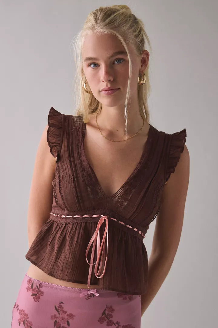 Kimchi Blue Ava Flutter Sleeve Tie-Front Babydoll Top