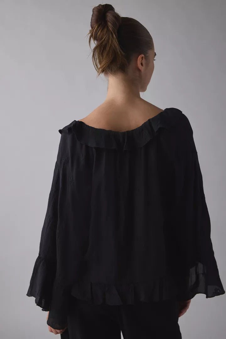 - Kimchi Blue Joni embroidered 3/4 sleeve ruffle blouse